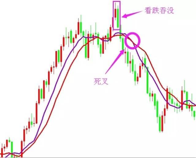 看跌吞没形态出现后,均线系统配合出现死叉,效果也能够得到更好的确认。