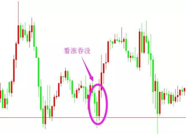 如图可以看出,出现“看涨吞没”形态时,并没有跌破前期重要支撑位,此时反转意味更强,后市上涨概率更大,行情看好,又增加了其有效性。
