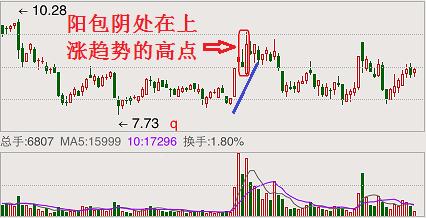 注:因为后期涨幅过大(接连涨停),所以图中(阴包阳)部位看起来比较小,实际阳线实体近3%,阴线实体近5%。