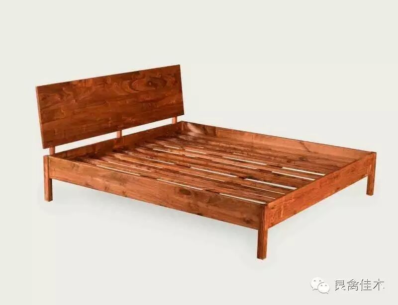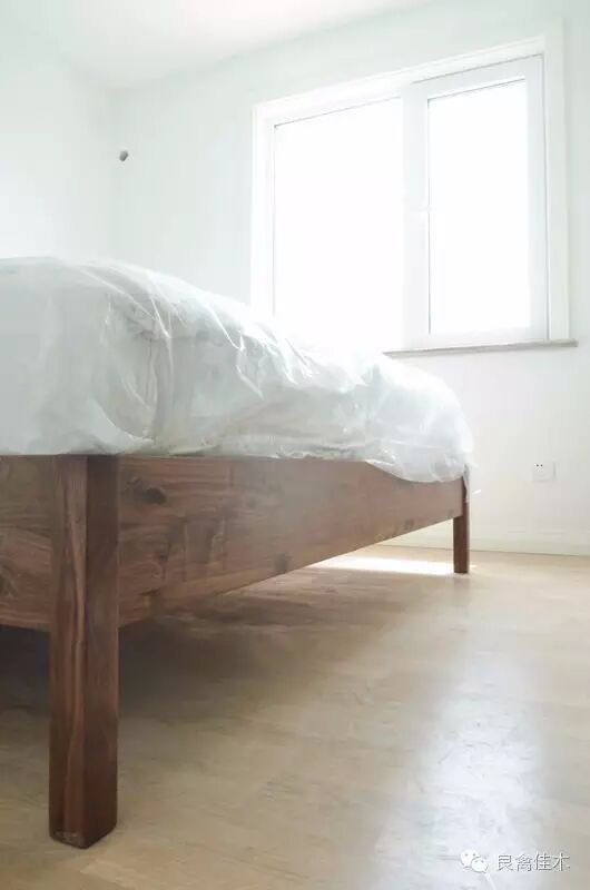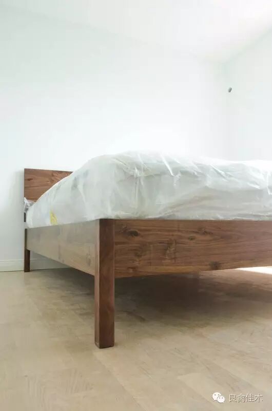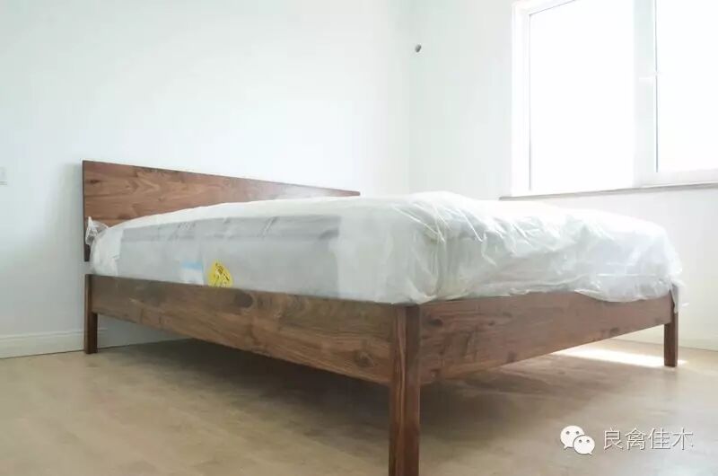 另外一位业主大卧室的床,极简的黑胡桃木架式床