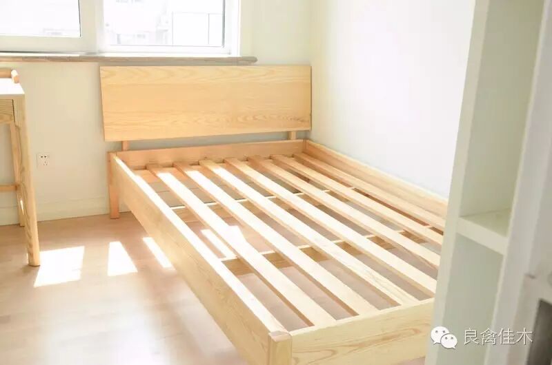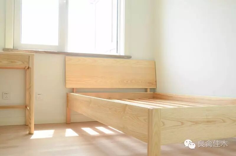 小卧室的日系极简床与大卧室风格一样,尺寸为1.5米。白蜡木迎接阳光,显得非常温馨。我们直接晒落户照吧。
