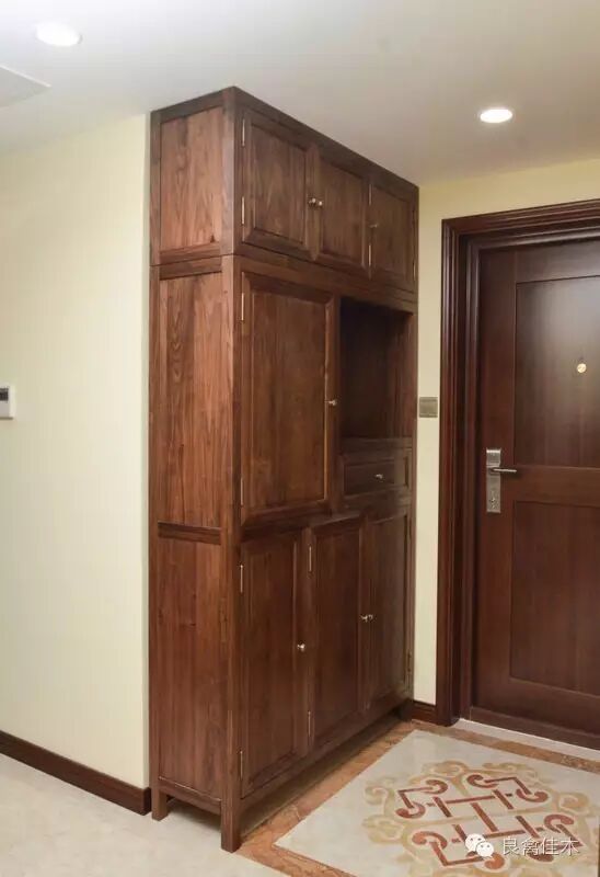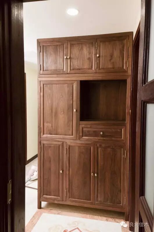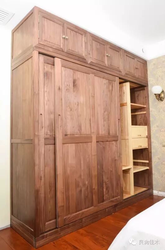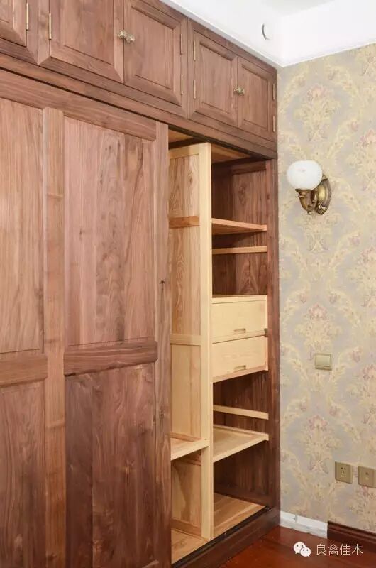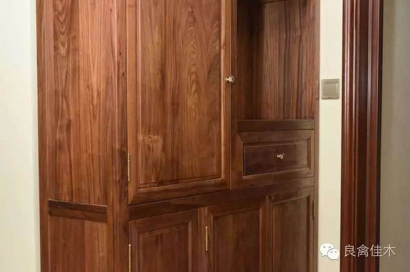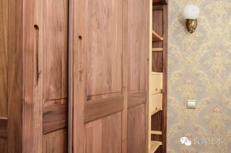 这个衣柜是黑胡桃木柜体,衣柜背板和内板,采用白蜡木搭配,有效降低了成本,同时也保持了很好的协调性,相信白蜡木与黑胡桃在使用的过程中,会变得越来越搭。