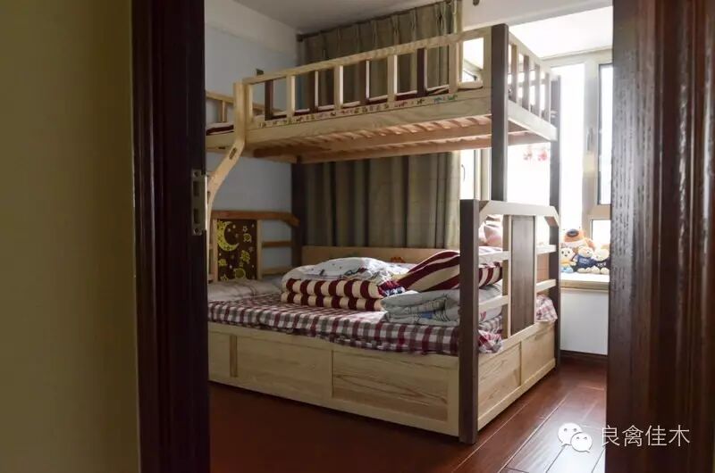 上下床是两居中小卧室的必备家具。这位业主需求主导了这个上下床的订制。