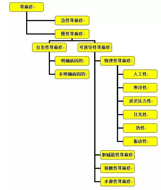按照病程时间划分:小于6周的为急性荨麻疹,而等于大于6周的为慢性荨麻疹。还可再细分为: