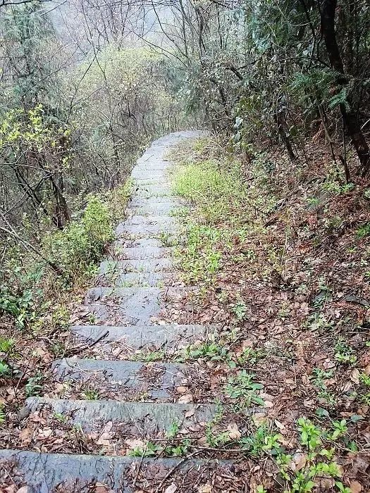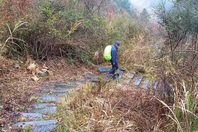 此线路是沿六股尖横切,石板路保存完好,途中少有岔道,强度中等。