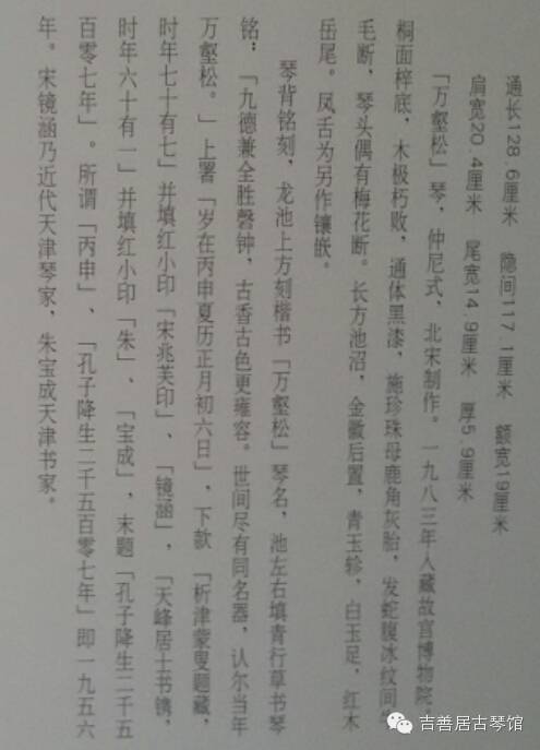 摘自《故宫古琴》郑珉中先生主编