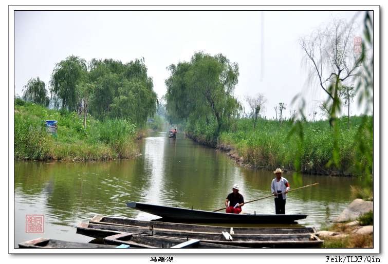 记得多年前曾经造访过马踏湖,印象中比较深刻是那绿水荡漾的湖面,那满目翠色的荷塘,当然还有那一片片密实的芦苇荡。加上那河岸杨柳、村头小桥,还有那纵横的河道、迷离的港汊、摇曳的小船,还真有江南水乡的情趣。但自从2006年马踏湖被评为“国家AAA级旅游区”、2008年被评为全国水利名胜风景区之后,还不曾到过这里。心想,在近些年各地对原有自然景观大加改造优化之时,马踏湖该会有更加迷人的景象。更加惦念的是,炎炎的夏日里,马踏湖里大片的荷花会是何种景象。于是,忙中偷得一日闲,周末奔马踏湖而来。
