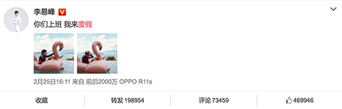 对于度假拉仇恨这事,李易峰显然很“享受”