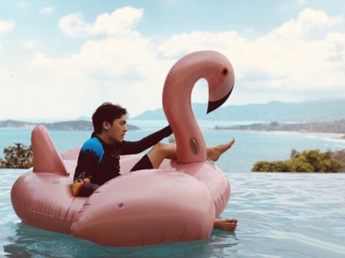 他在网络晒出水上照片一脸享受的样子并配文“你们上班,我来度假”