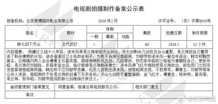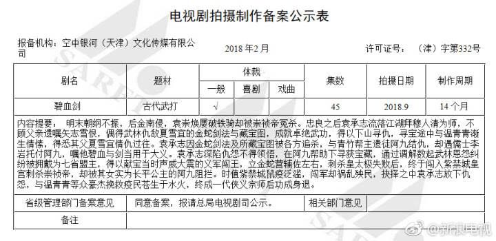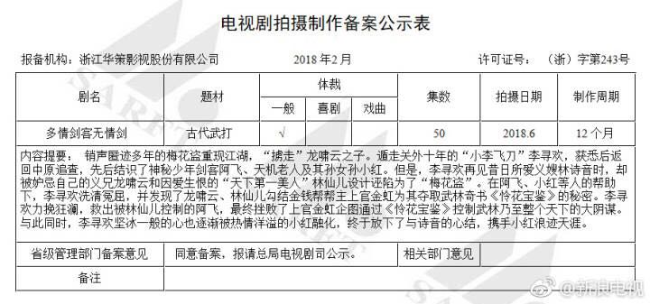 日前广电公布了2月份电视剧备案表