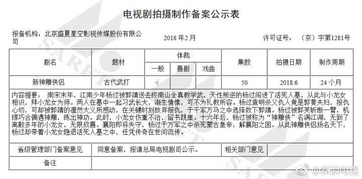 包括《新神雕侠侣》《碧血剑》《新七剑下天山》《多情剑客无情剑》等多部知名经典著作都将被翻拍