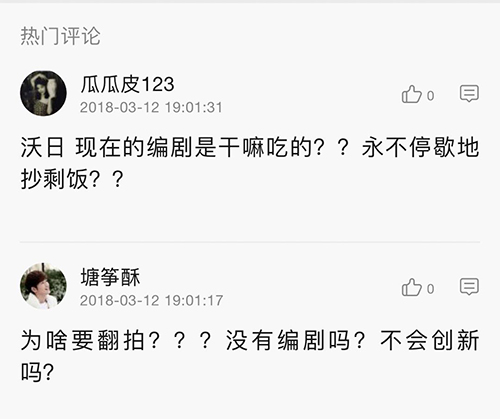 不知道金庸老爷子听说了自己的作品这么受各大影视制作公司欢迎又会有怎么样的表现呢?不过网友还有金庸粉丝们显然都不是很不开心。有网友评论道“为啥要翻拍?没有编剧吗?不会创新吗?”还有网友评论表示“现在的编剧都是干嘛吃的?永不停歇的抄剩饭?”