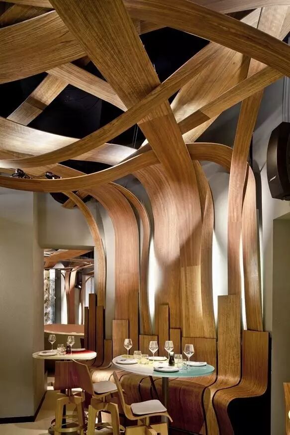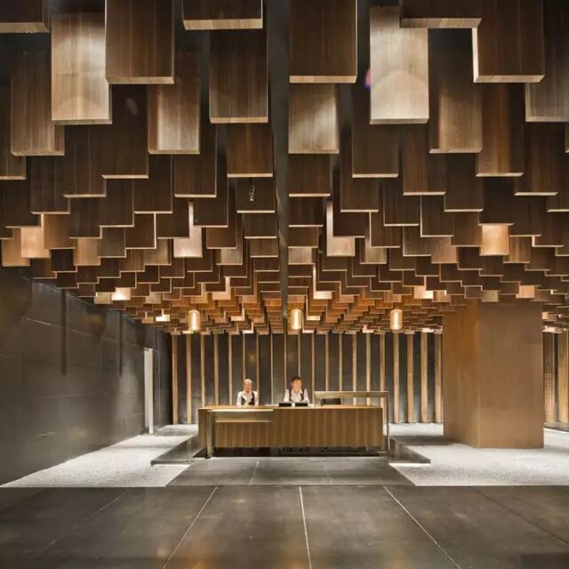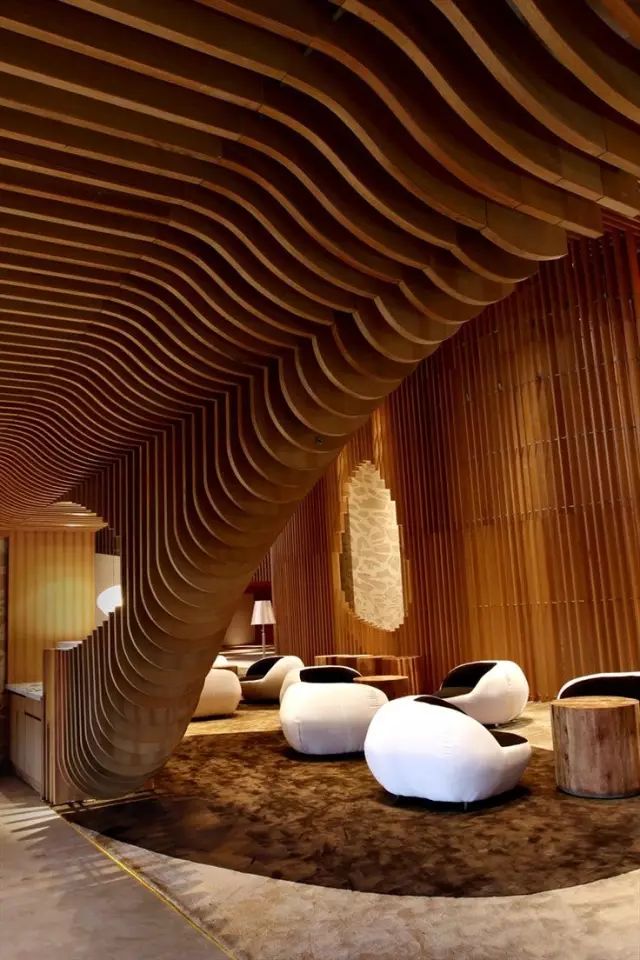 木头,在进入中国文明长长的甬道时,正是作为一种语言的它起到了巨大的中介作用。比较起石头建筑的坚硬、沉重、刚烈、整饬来,木质建筑,以其自然、朴素、亲切、友好,以及富有天然的生命情调和人情味深受设计者的偏爱。在酒店设计中,木材元素的运用也越来越多,木材不仅时髦且具有独特性,每一块木头都是那么的独一无二!
