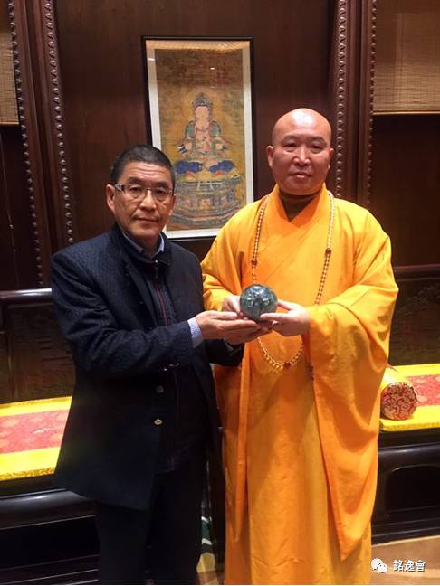 2016年12月31日19点30分,坐落于南京牛首山腹地的佛顶寺,迎来了来自台湾的中国著名夜明珠收藏家庄志铭先生。牛首山佛顶寺住持曙光主持,在寺千佛殿外率弟子迎候庄志铭先生的到来。