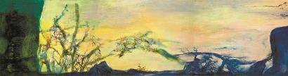而在赵无极这里,对于东方哲学和中国艺术写意精神的体认使他从对象化的写实中脱落而出,进入一种意象生发、当下生成的绘画状态。他的绘画经验中蕴含着中国人感知世界的独特方式:游——变动不居,游走不定;观——内外打通,体察入微;望——思感交作,会通履远。他用画笔周行于纷至沓来的意象世界,执心物两端,得兴象意境,恍兮惚兮,若有物浑成,依稀隐约,又氤氲明灭。这一切正如他所致敬的屈原——“忽反顾以游目兮,将往观乎四荒”。