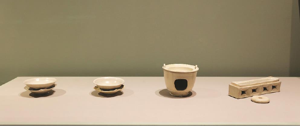 宋代流行点茶之法,其与煎茶法的区别在于不将茶末投入沸水中煎煮,而是将茶末调膏于茶盏中,再用滚水冲点。长治屈家庄村咸通六年唐墓出土的邢窑白釉茶具组合中有一件执壶和一件渣斗,是点茶必备的器具,说明在晚唐时期点茶之法或已产生。