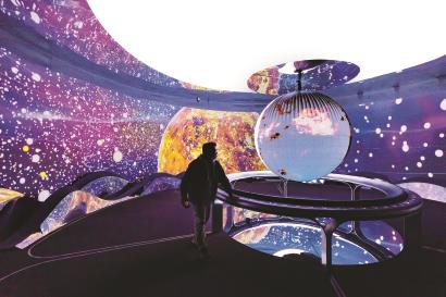 观众在参观“建发·三体沉浸式艺术展”的“三体起源”部分