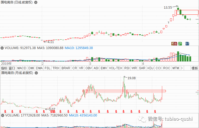 是启动点上考验眼力,包含逻辑判断,最基础的还是认知,在主升阶段则考验对人性弱点的克服能力及系统执行力,在前面很长的时段,一直亏弱于认知,主要指形态结构、成本分布、突破前后需要的价格逻辑与心理变化缺乏必要的积累,其所有的理解都指向人性的弱点,成功与失败的案例之间仅仅就差在价格于成本线上下波动时对人性的作用上,这里已经包含了市场节奏(主要指主流品种间切换)的因素,假如南自情绪没有达到顶峰,汉缆是否能开出强有力的阳线,仍属未知;前面三组品种间同比;若图表错过了最佳时点,由人性的弱点必然引发新的极可能是不利的变化,由于没有获得新的向上发展动力,转而向下,若价格反转,这里就是大亏损起点,比如4月23日后的汉缆若无大阳线,会是另外一个结果