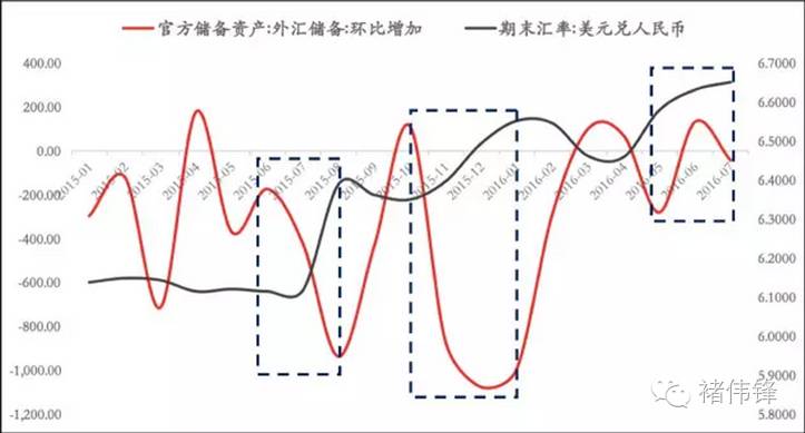 第二个框,是今年1月的快速贬值,外汇占款环比又是暴跌。(第三轮股灾)