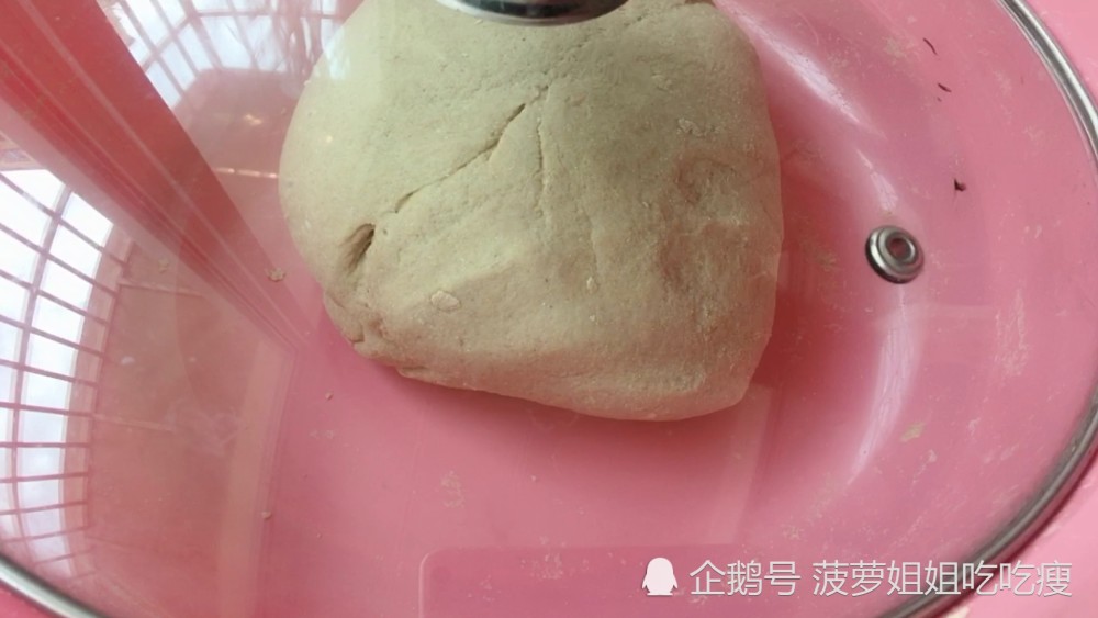400克的全麦面粉和2克的酵母粉混合均匀,用糊化的魔芋粉来和面,搅拌成面絮后下手揉成光滑的面团,盖上盖子放在温暖处醒发至2倍大;