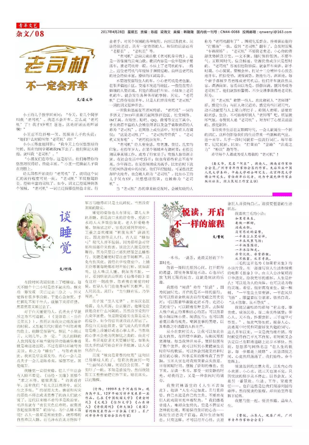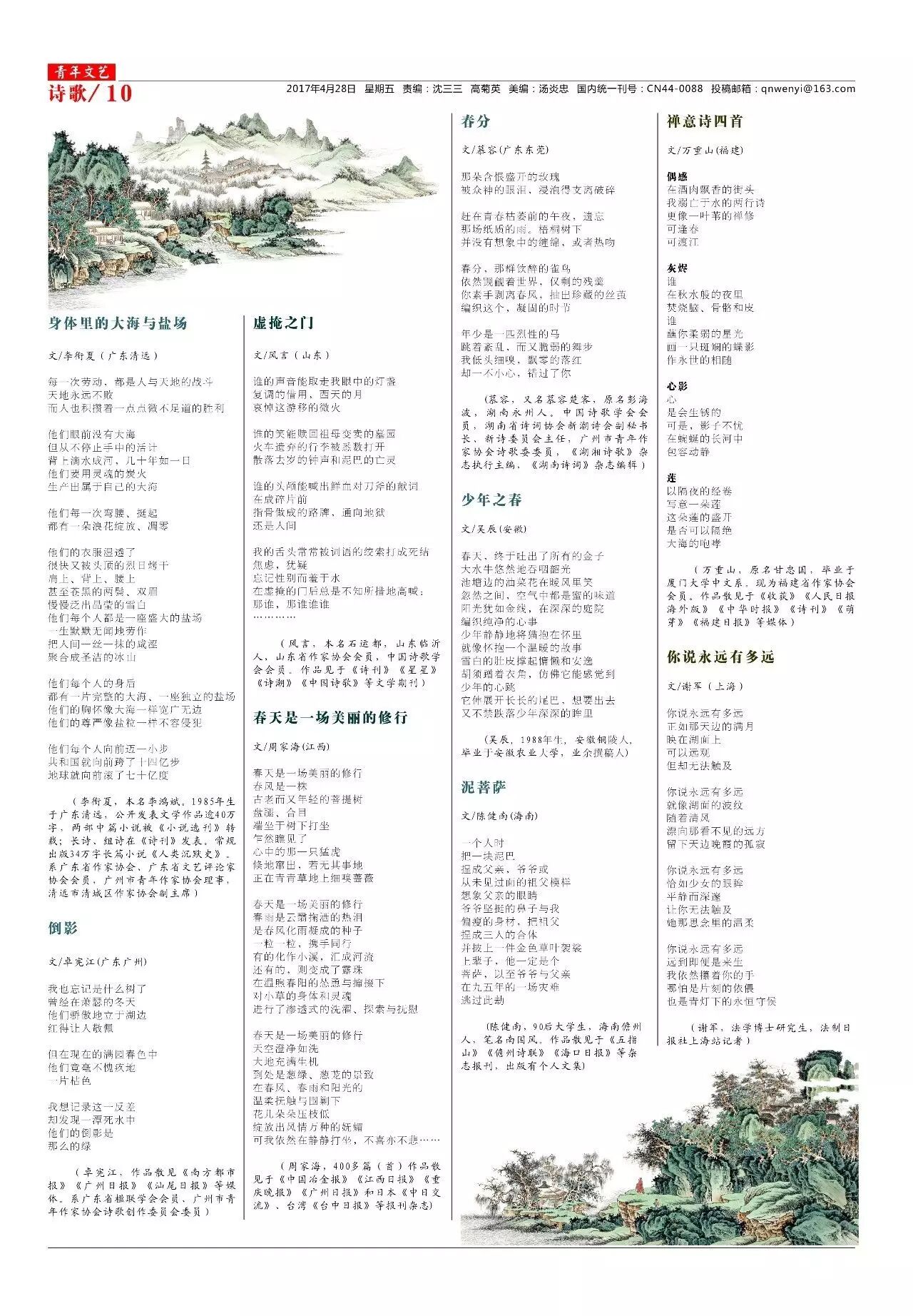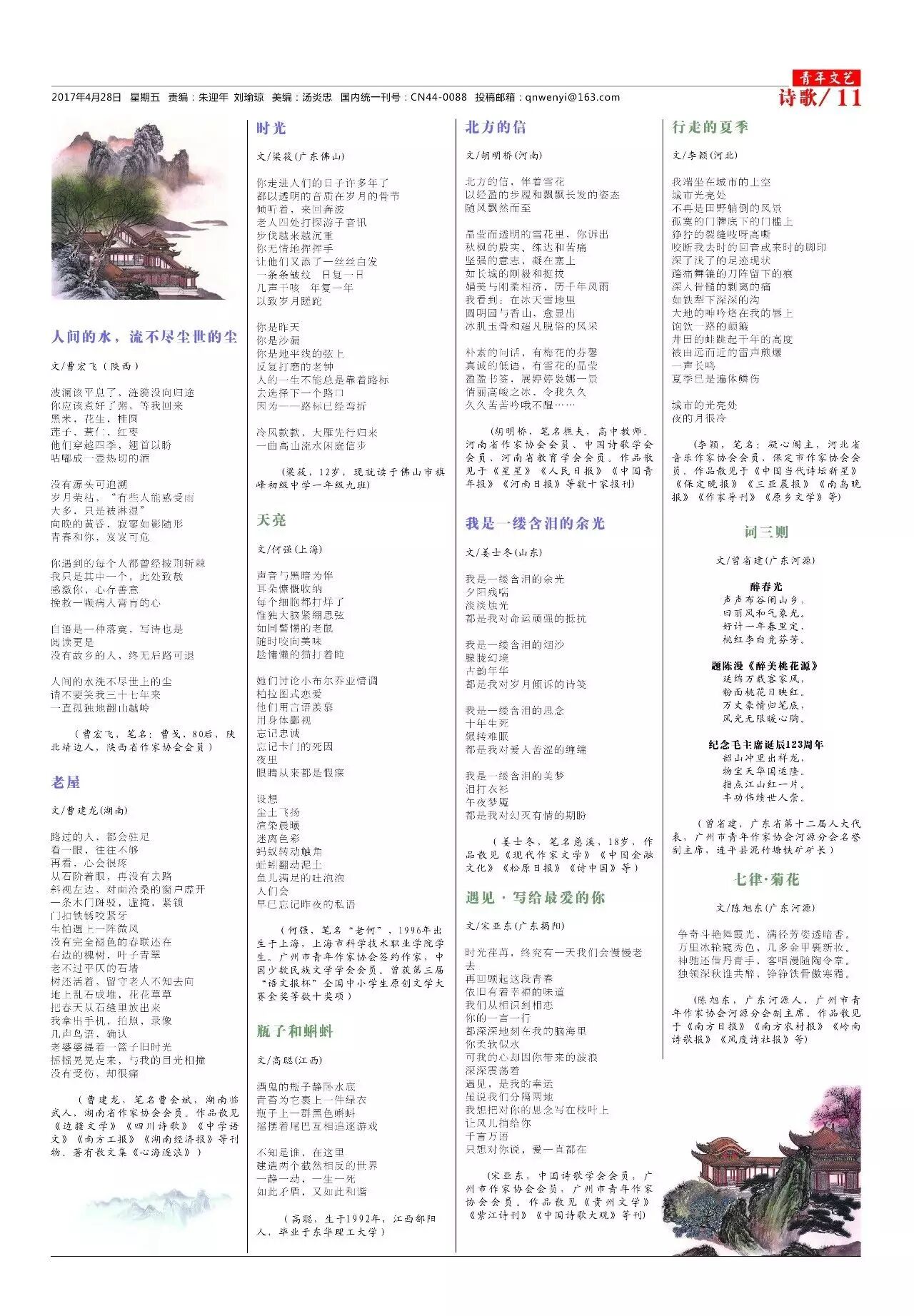 广州市青年作家协会《青年文艺》第四期08-16版入选作者作品名录