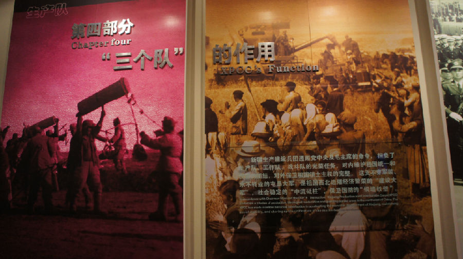 走进序厅,一把枪和一把锄头,体现了兵团的双重职能