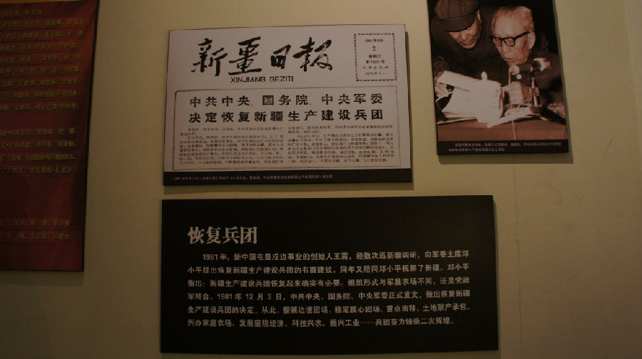 新疆生产建设兵团组建于1954年,1975年撤消,1981年恢复