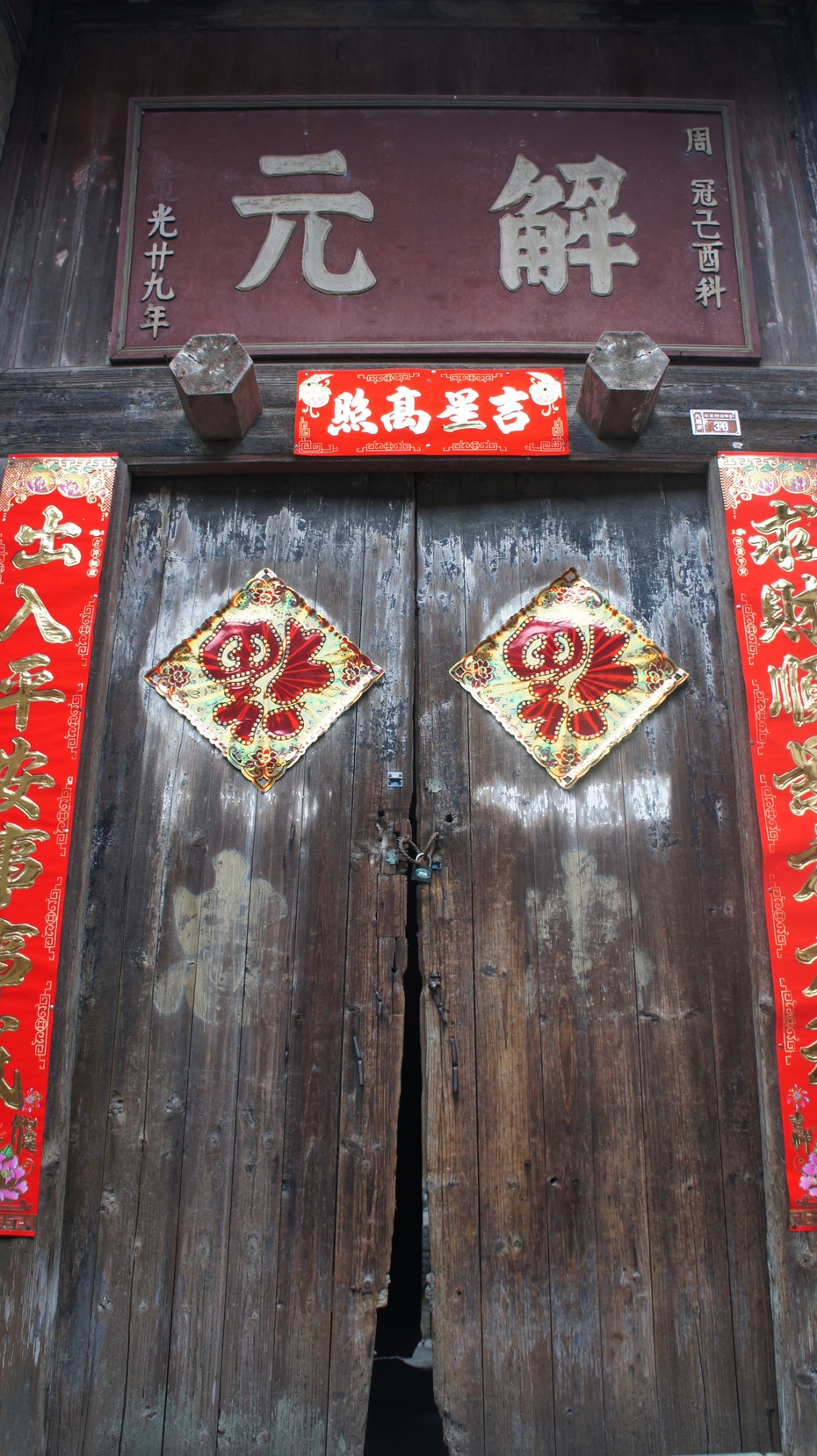 古民居有的还有人居住,每户的大门框上都标有代办两江总督、布政使、按察使、道员、知府、同知、直隶知州、知州等官阶,显示了该户曾经出的官员级别。这个村有文化、有风水、有环境,一条小河从村前缓缓流过。春天油菜花开的季节,夏天荷花开的时候,村前鲜黄的油菜花和鲜艳的荷花与远处的小山交相辉映,显得非常漂亮,构成了小村古建筑之外另一道亮丽的风景。