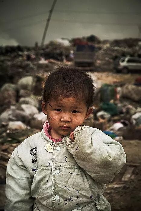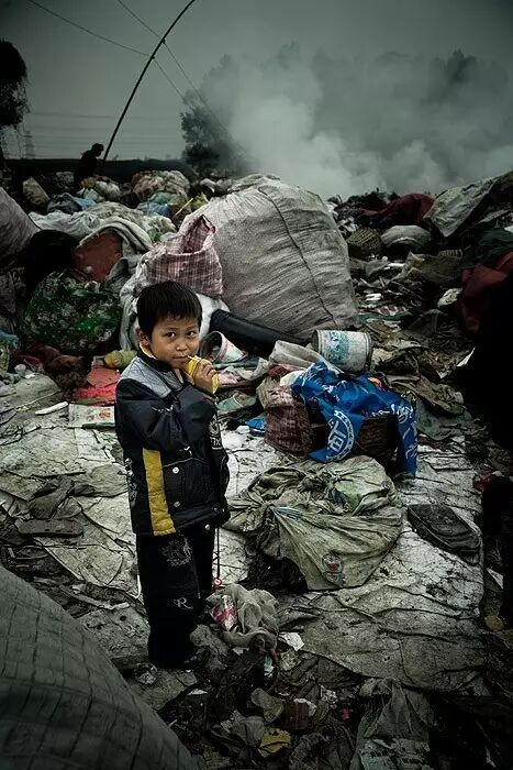 这些人的孩子,穿着垃圾堆里捡来的衣服,玩着垃圾堆里捡来的玩具,吃着垃圾堆里捡来的食物,不上学,每日在污水横流的垃圾场里玩耍,我还看到有一个孩子穿着的鞋子,左右是各不相同的。