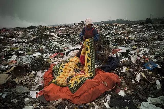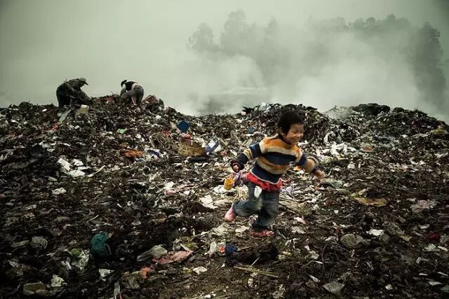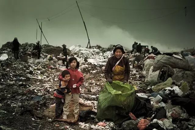 一个露天的偌大的无人管理的垃圾场,旁边还居住着数十家以这个垃圾场为生的人们。