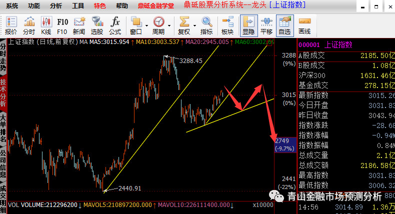 在本周初我们分析了,市场的总体是下跌结构,上证指数将下破前低,反弹属于短线过程。其总体形态如在寂寞青山:调整已至反弹还可以有图中所示: