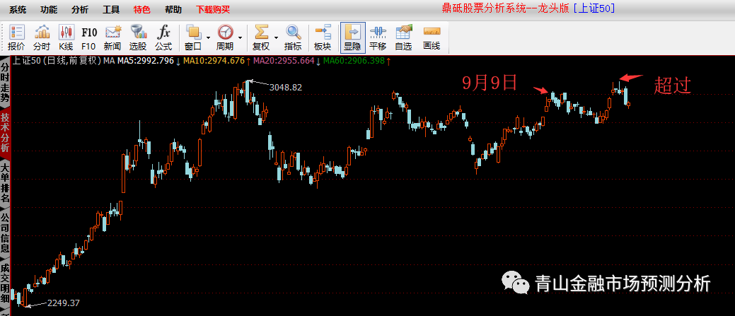 指数方面分化很大,上证50指数在本轮反弹中超过了9月9日的反弹高点寂寞青山:要注意9月9日风险。而中证1000指数则没有突破下行压力线,表明了权重与题材,蓝筹与垃圾股的主要区别。不过,不管哪个指数都是一种震荡中的形态,短期的走势的趋势性很弱,不宜盲目杀跌。