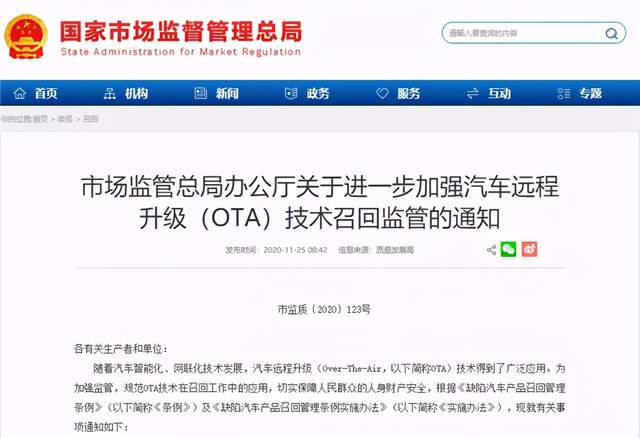 事实上,特斯拉此次开诚布公的召回也实属无奈。首先,本次召回是在国家市场监督管理总局启动缺陷调查情况下开展的。其次,去年11月25日,国家市场监管总局办公厅就发布了《关于进一步加强汽车远程升级(OTA)技术召回监管的通知》。文件中明确指出,车企“采用OTA方式对已售车辆开展技术服务活动的”,要向市监总局备案;而“采用OTA方式消除汽车产品缺陷、实施召回的”,要制定召回计划、向市监总局备案,并依法履行召回主体责任。