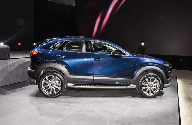 CX-30 EV的外观相比燃油版车型在设计上无太大变化,依旧采用魂动2.0设计哲学,从传统日式减法美学中汲取灵感,前脸使用六边形前格栅设计,没有采用封闭式处理,看上去不会觉得是一款纯电动车,前引擎盖上方线条隆起很激进,前保险杠跟侧包围倒是换了造型,主要目的是区分跟燃油车版本。