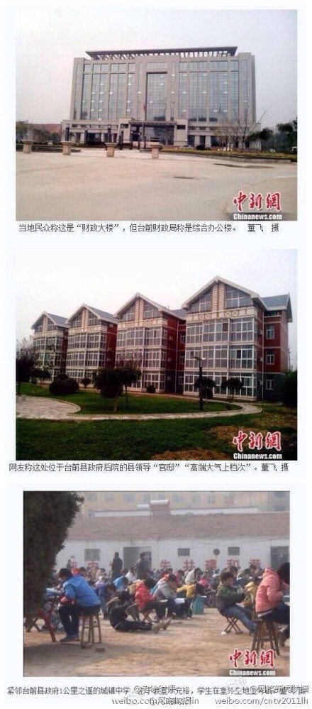 ——离开恢宏现代的办公大楼一公里远,当地的“城镇中学”校舍破败,而且不够用,学生们在土皮的操场上写作业,桌凳高高矮矮,还有人席地而坐……“中新网”评论道,这不像个学校,倒像个难民营。