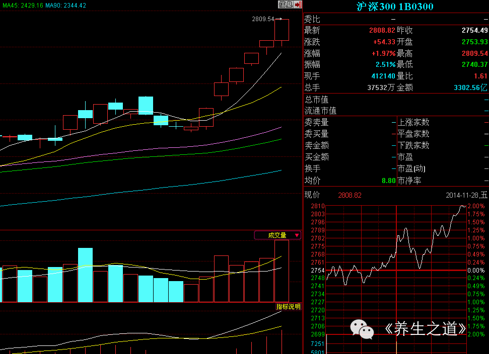 在已经结束的一周,我在这里还要告诉你一个更大的记录,A股周五的成交量7000亿人民币,已经超越美股历史上的成交量峰值(2007年7月26日,995亿美元,约合6100亿人民币),成为人类历史上一国单日成交量的最大值。另外就是沪深300指数在本周五已经突破2800点,离我在10月31日所写的沪深300指数将会在11月去挑战3千点,仅相差200个点的空间,这是一种完全逼空逼疯的走势,因为在周四已经有很多职业投资者在跟我交流的时候就说呗洗出来了,在经过周五的这种宽幅剧烈震荡清洗,恐怕真正能够持有分享到回报的投资者更少。