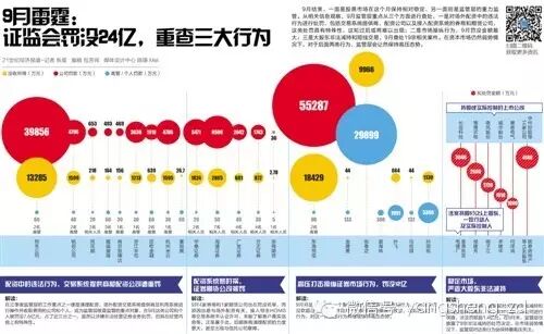 据记者不完全统计,9月以来证监会已向违法违规的法人或自然人开出总计近24亿元人民币的罚单,而被罚主体所涉的违法违规事项,共涉及内幕交易、非法经营证券、编造传播虚假信息、信息披露违规、市场操纵以及未按规定审查了解客户信息等六大类型。