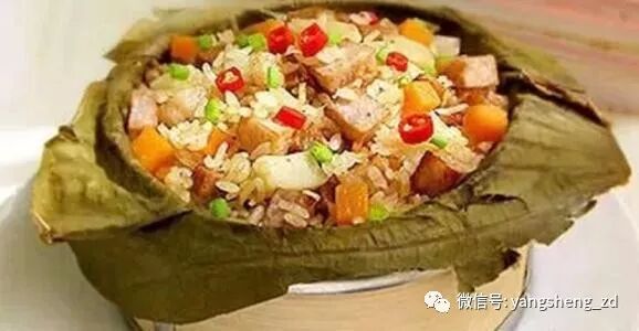 鸡肉、蘑菇均切成薄片,火腿切成10片,葱切短节、姜切薄片,荷叶洗净,用开水稍烫一下,去掉蒂梗,切成10块三角形备用,蘑菇用开水焯透捞出,用凉水冲凉,把鸡肉、蘑菇一起放入盘内加盐、白糖、胡椒粉、绍酒、香油、鸡油、玉米粉、葱节、姜片搅拌均匀,然后分放在10片三角形的荷叶上,再各加一片火腿,包成长方形包,码放在盘内,上笼蒸约二小时,若放在高压锅内只须十五分钟即可。出笼后可将原盘翻于另一干净盘内,拆包即可食用。