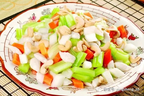 我们知道莴笋含钾量较高,有利于促进排尿,对高血压和心脏病极为有益。能改善消化系统,增进食欲山药有健脾,除湿,补气,益肺,固肾,益精的功效。含有可溶性纤维,能助消化,降血糖,腰果含有丰富的油脂,可以润肠通便,润肤美容,延缓衰老。经常食用可以提高机体抵抗力。