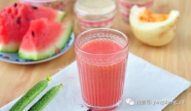 我们都知道西瓜有很好的解暑祛烦、生津止渴以及清热利尿的功效,是治疗肾炎、尿路感染等症的良药。另外还能够增强肾脏的排毒功能。而黄瓜中含有的维生素C具有提高人体免疫力的功能,可达到抗肿瘤目的。所以此款蔬果汁非常适合肾脏功能不佳者饮用。西瓜属于生冷之品,不可多食。