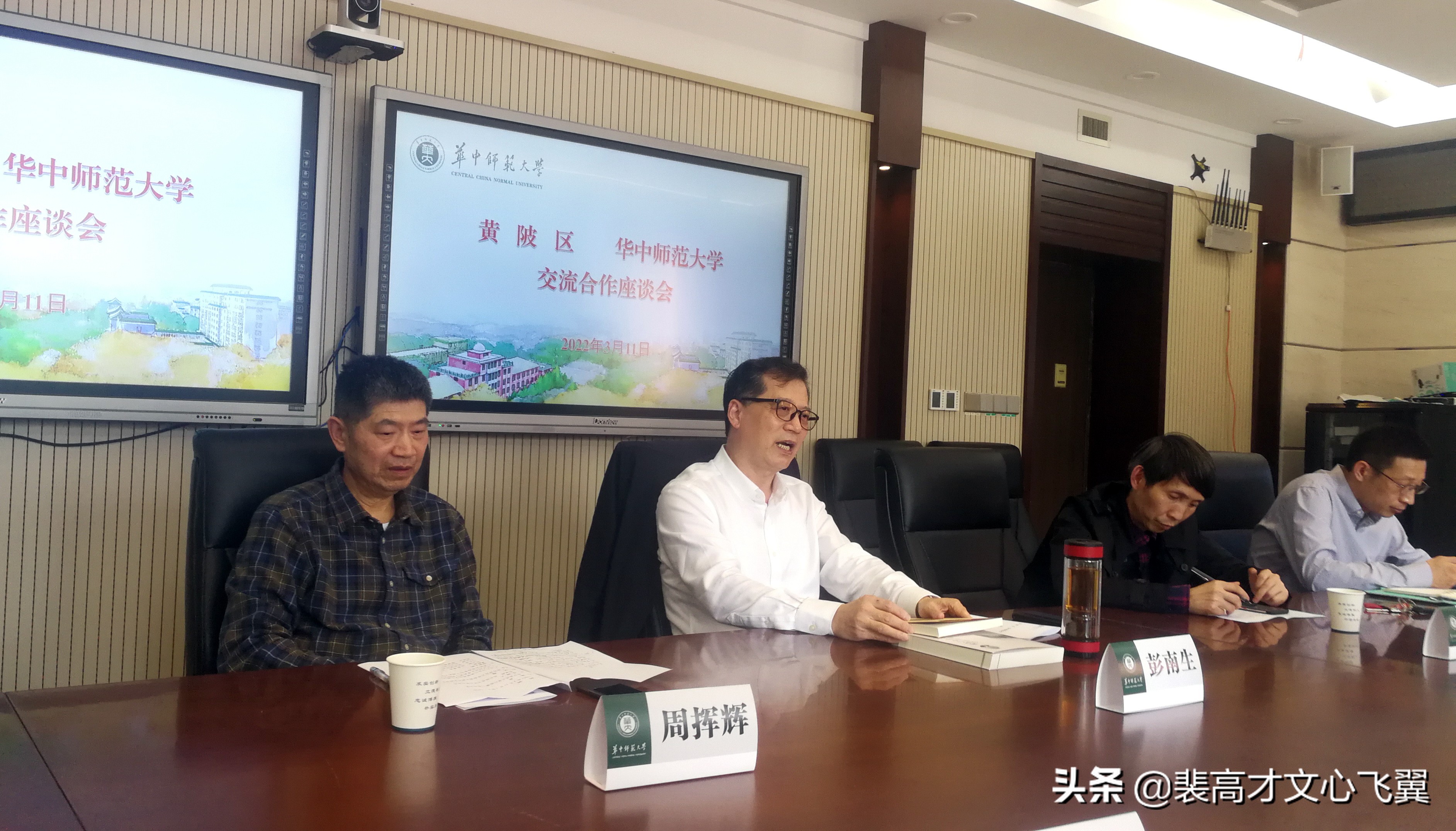 陈宣恺、陈时父子是从二程故里黄陂望鲁书院与望鲁学堂(其前身为二程书院)走出的近现代教育巨匠,影响深远。2022年3月11日下午,在华中师范大学出版社周挥辉社长的主持下,武汉黄陂区委常委、宣传部长何文娟一行,就区校合作共建二程书院与《中华大学校长陈时》(裴高才、陈齐著,华中师范大学出版社2022.1)、陈时嫡孙女陈家益领衔编纂的《陈时与中华大学》两部图书首发,同华中师大党委常委、副校长彭南生教授一行面对面交流。