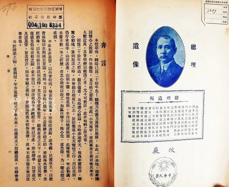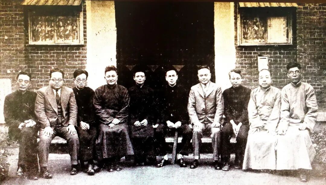《武昌中华大学二十周年纪念特刊》载孙中山像、陈时《弁言》1932-北平师大藏 中华大学首任校长陈宣恺题辞(收入裴高才、陈齐合著《中华大学校长陈时》)-民间收藏 左六起陈时与邹昌炽、严士佳、鲁济恒,左一起胡竞存、方宗汉、刘绍书等部分中华大学名师