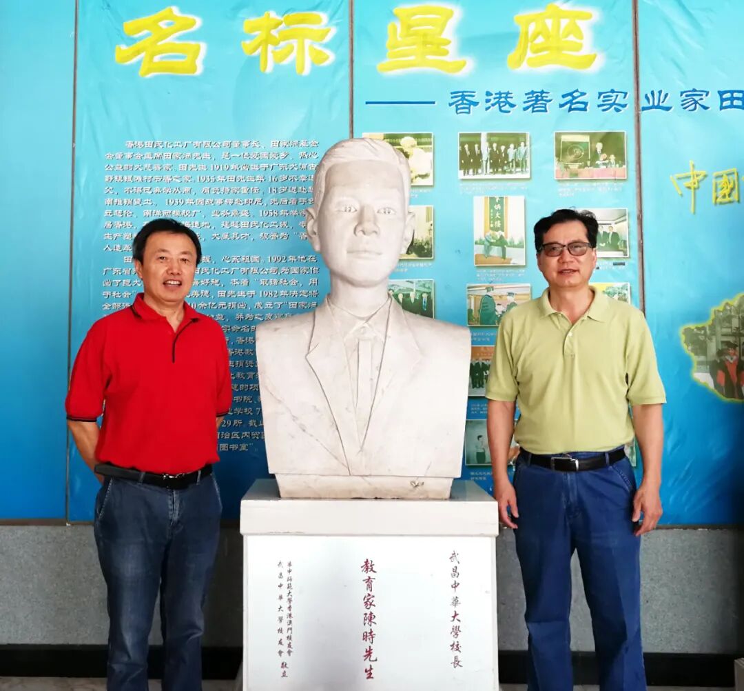 右起彭南生与裴高才于华中师范大学拜谒陈时汉白玉塑像