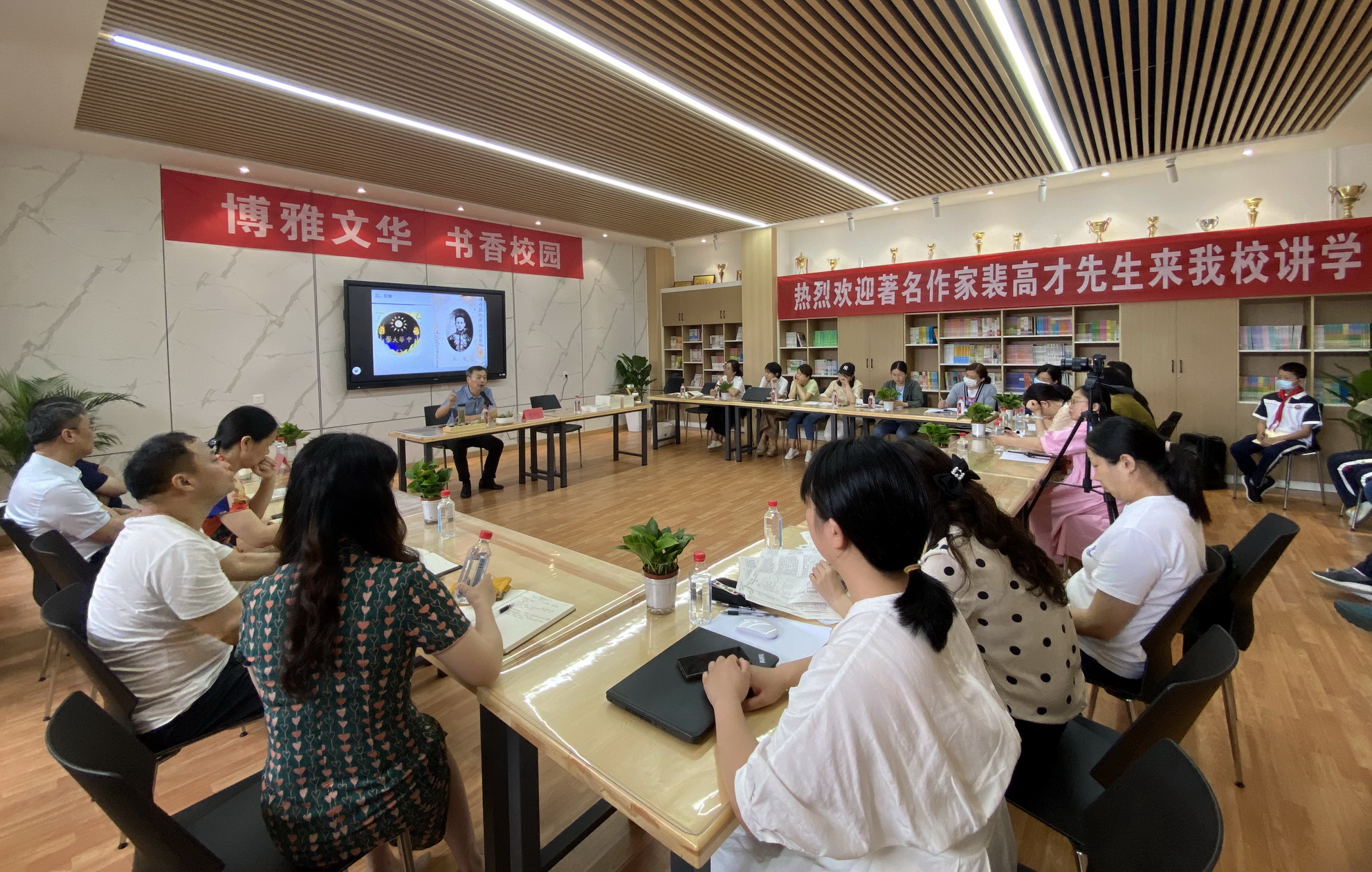 2022年6月2日上午,武昌文华中学博雅学社迎来了两位著名专家学者的到访。一位是著名作家、文化学者,中国作家协会会员裴高才先生,一位是武汉市文联副主席、武汉大学文学教授,著名文艺评论家樊星先生。武昌文华中学师生代表40余人参加了本次主题为“博雅文华 书香校园”的名师讲学活动,会场学习氛围浓烈、教师学生与专家积极互动,掌声不断,收获满满!