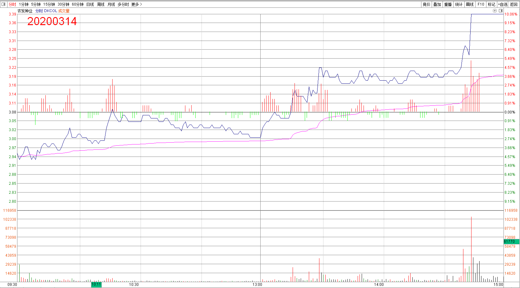 从上图的农发种业里我们可以看到,该股开盘之后,出现了二笔分时阴高量向下打压的抛售,这表明资金在这个时刻出逃,但它们后面都被小量轻易拉起来,则说明这里跑出的量不是主力的量,也表明市场资金不看空后市。这是很重要的一点。