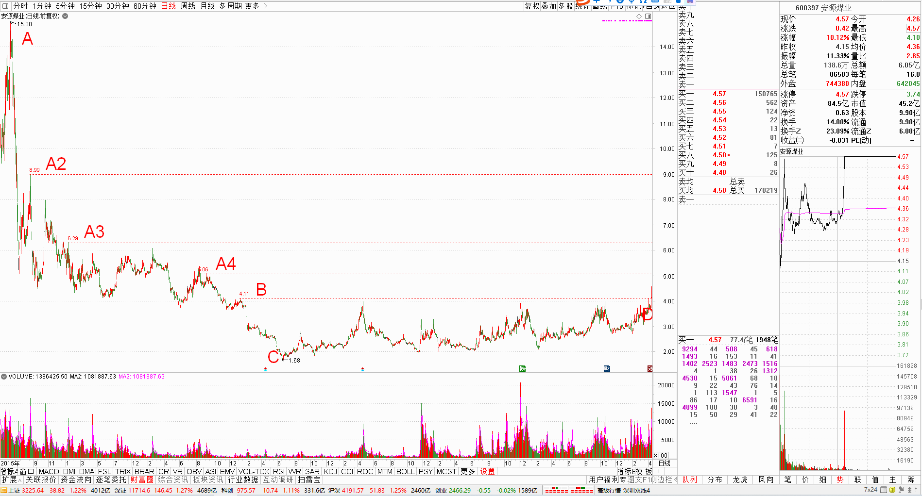 那么今天有什么股引起我的注意?有一只我们以前的案例股-安源煤业,引起了我的注意。其实上今天煤炭涨幅居前的,都是我们之前的案例。但是我特别注意到它。