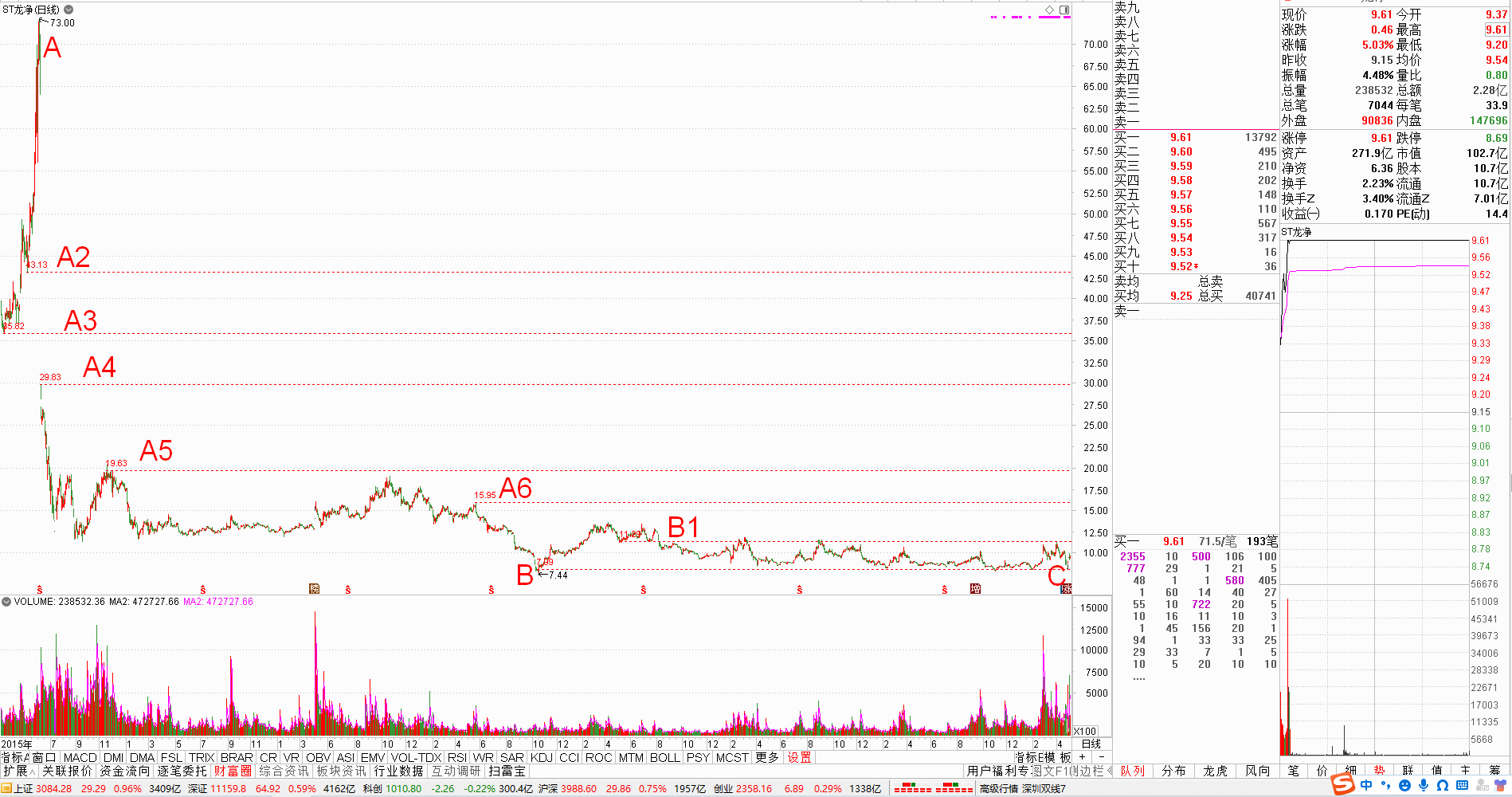 龙净环保这只股票,在A股里曾是“环保一哥”,走势极为强悍,如果按后复权计算,以20050721的4.83作为起计点,到20150605的197.34止,上涨时间长达10年,涨幅高达39.85倍!