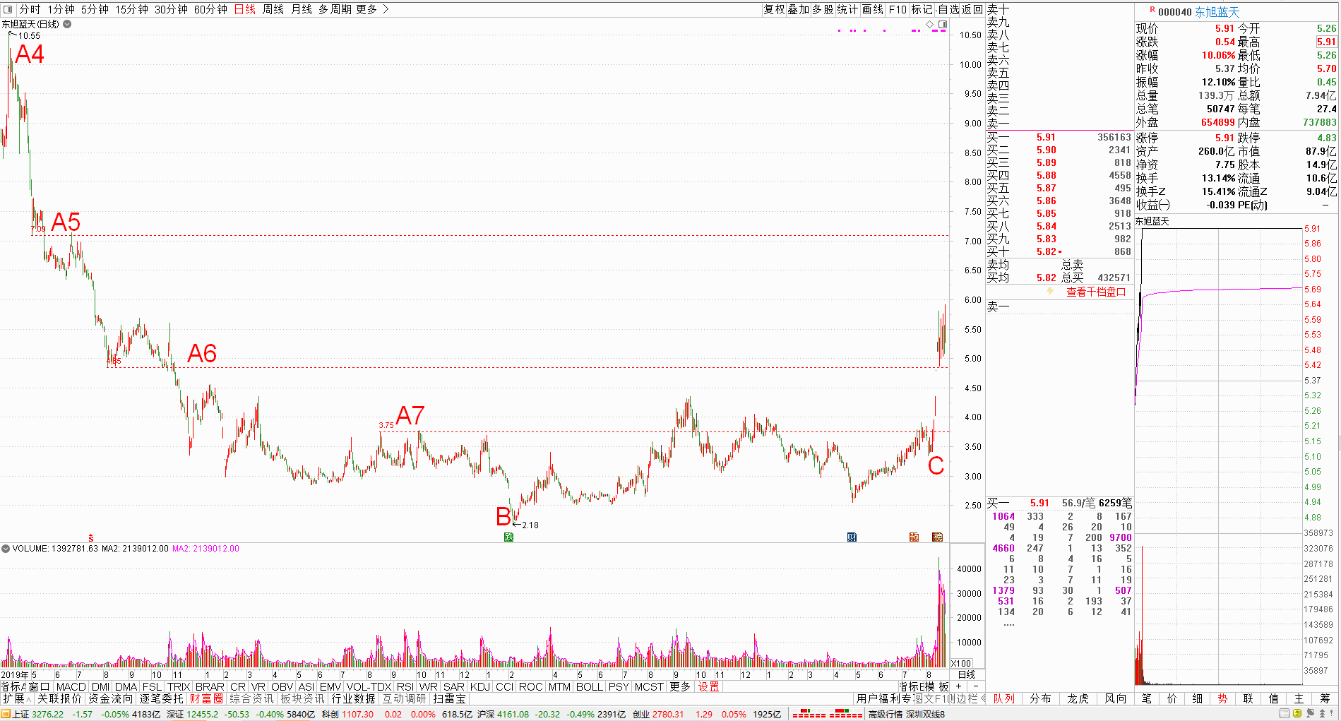 1、东旭蓝天。该公司的主营业务包括光伏电站投资、建设、运营,房地产开发与销售、物业管理等,涉及的概念有光伏、风电、TOPCON电池和机器人等。技术上已经突破主升启动线,并已完成空中加油。如果热点继续发酵,不排除后市会进一步向上攻击。
