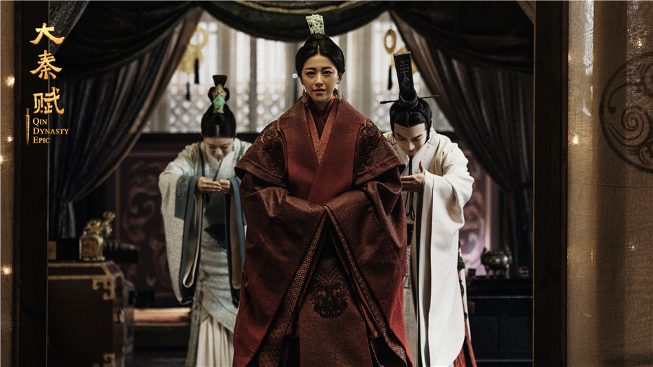 不得不说,赵姬的命运,始终悬在观者心中,彼时的秦国,外有群狼环伺,内有族臣之争,难有几日太平,而赵姬,也在这种极其复杂的环境中,渐渐变得成熟起来。人物的装扮从艳丽到庄重,人物的举止从轻盈到稳重,甚至细化到人物的表情,与说话的腔调之上,都有渐进细微变化,很明显感觉到,朱珠是很用心在对待这个角色,比如说在前期,赵姬说话的语气多是上扬的,而在后来,语调就渐渐地沉了下来,虽然容貌依然秀丽,但却已经是妥妥的不怒自威。