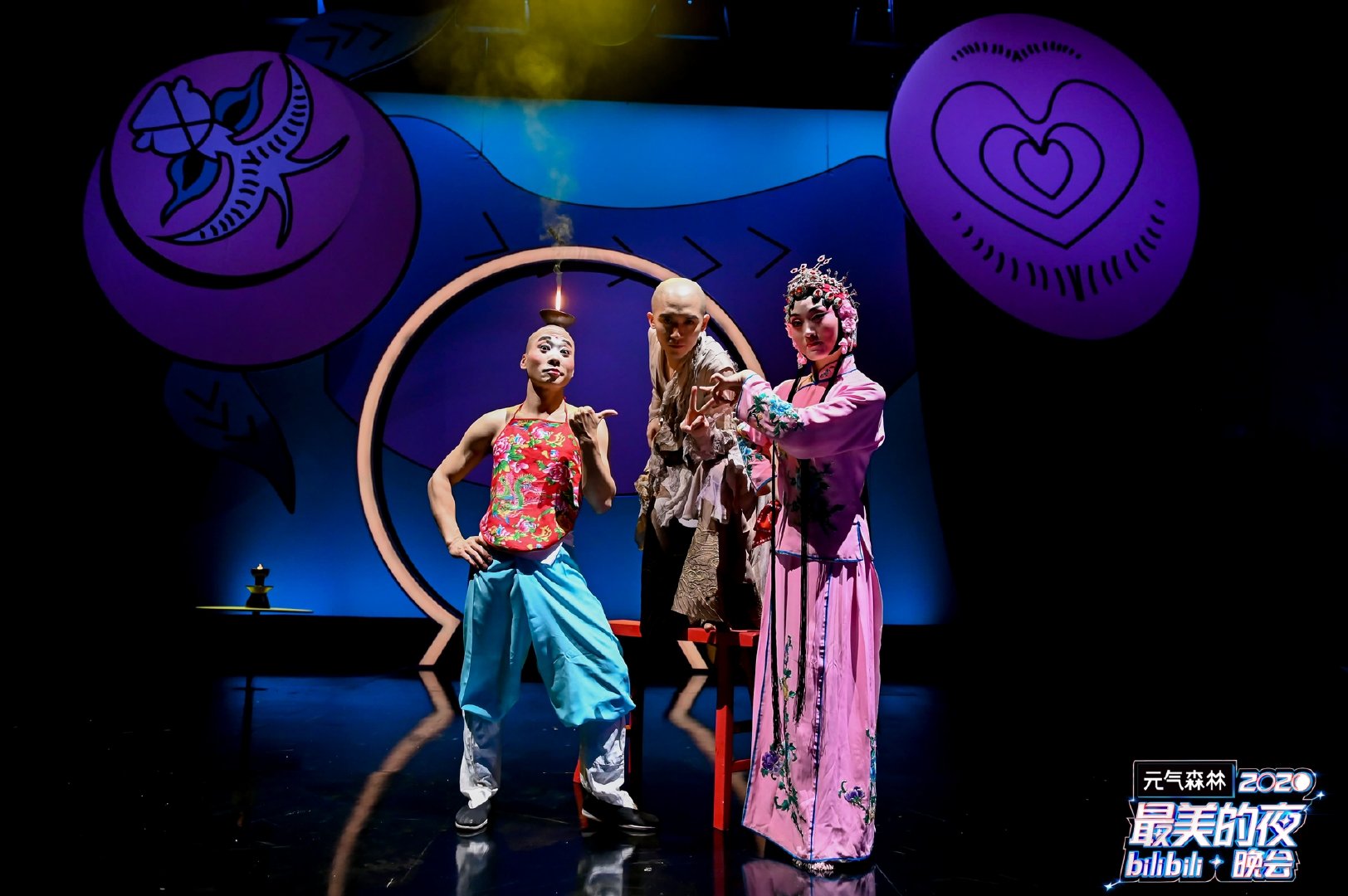 同样让人难忘的,还有京剧裘派嫡系第四代继承人裘继戎带来的《惊·鸿》,这是一个相当惊艳的节目,裘继戎以一个游离的舞者的身份,依次串起了从昆曲《游园惊梦》到秦腔《白蛇传》,从评剧的《天女散花》到川剧《滚灯》以及京剧《铡美案》的多个剧中的经典片段,丰富多样而又毫无违和感,形式感强,内容丰富,让我们得以感受到传统文化所带来的震撼,不懂戏曲的人,也一样能被打动。但换个思维说,这样的新形式新内容,对于一台晚会而言,能不能上其实是会担风险的,能顶起这样的新锐作品,估计除了B站也找不到别家了。